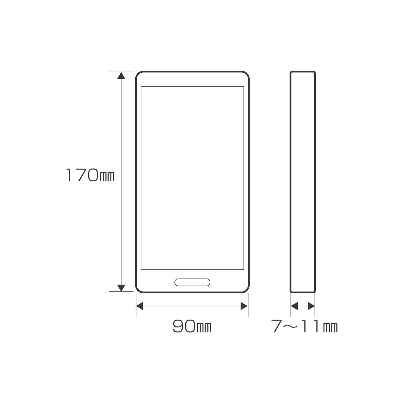 高さ170×幅90×厚さ7~11mm以内のスマートフォンでご使用いただけ、ご家族やスマートフォンを買い替えても引き続きご使用いただける汎用サイズの防水ケースです。