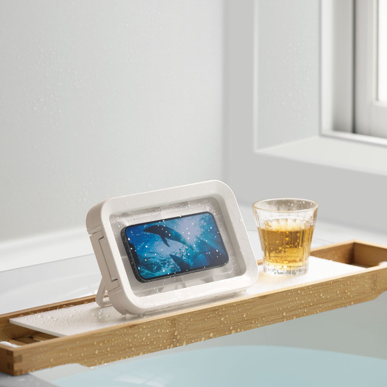 おふろなど水回りで映画や音楽などをスマートフォンで満喫できる、