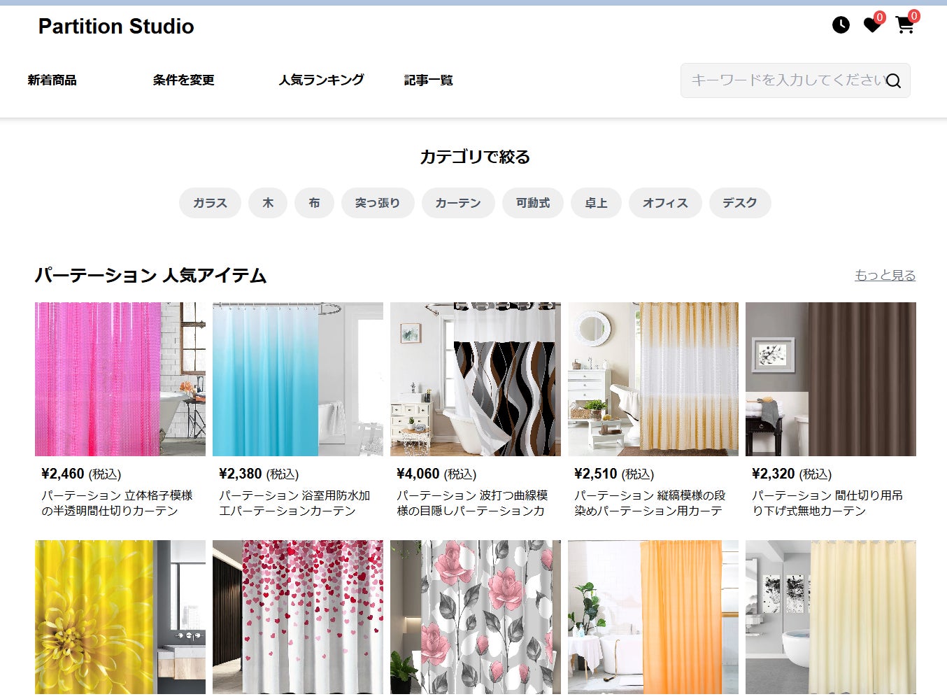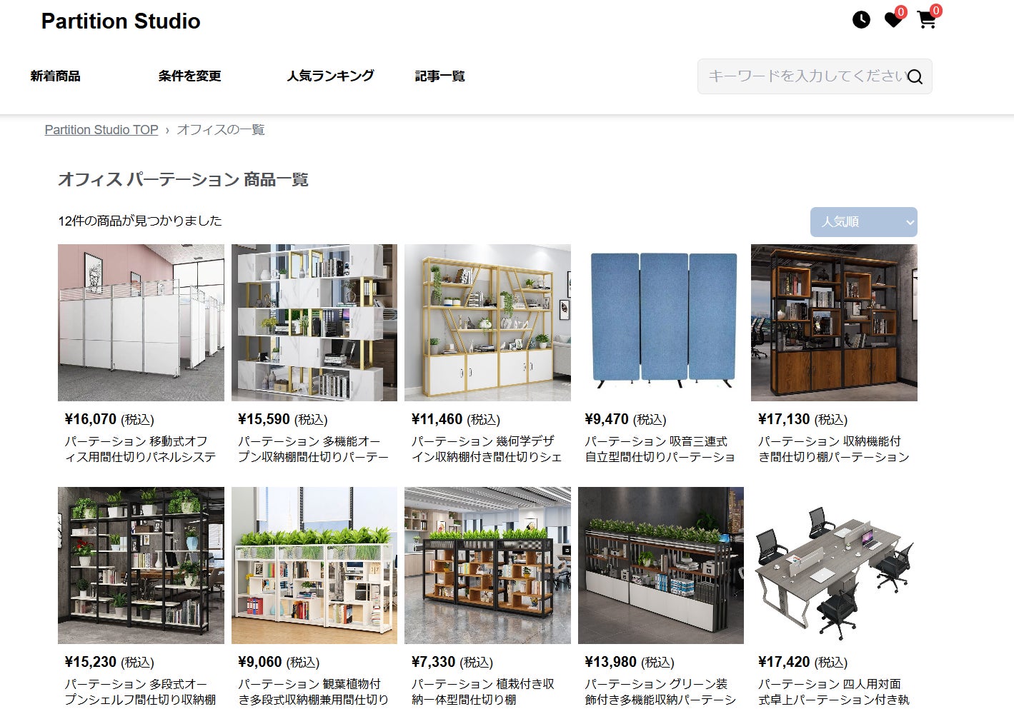 「Partition Studio(パーテーションスタジオ)」は、各種パーテーションに特化した情報サイトです。オフィス向けカテゴリページもあります。