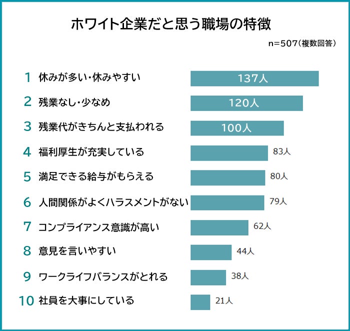 【ホワイト企業だと思う職場の特徴ランキング】507人アンケート調査