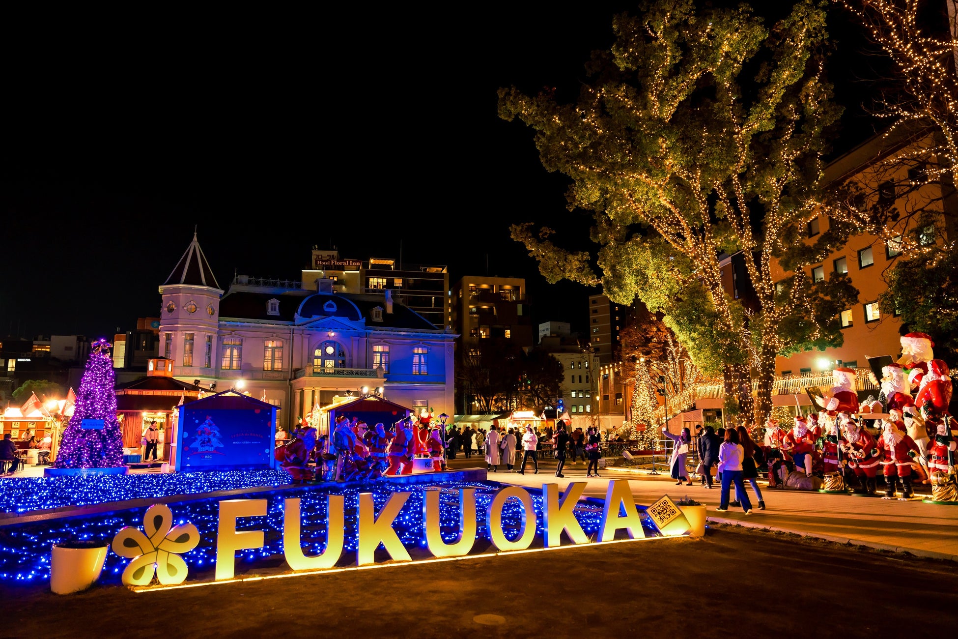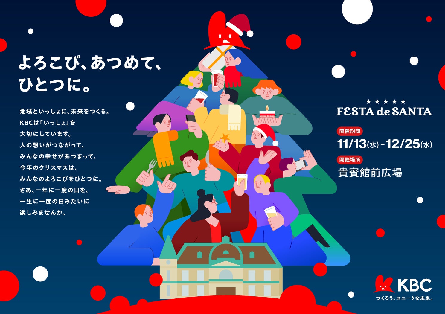 福岡の冬の風物詩・クリスマスアドベントのひとつとして、貴賓館前広場(福岡市中央区西中洲)にて開催中の「KBC FESTA de SANTA」。ことしも”世界で一番サンタに出会える”ユニークな会場を、たくさんの方にお楽しみいただいております。