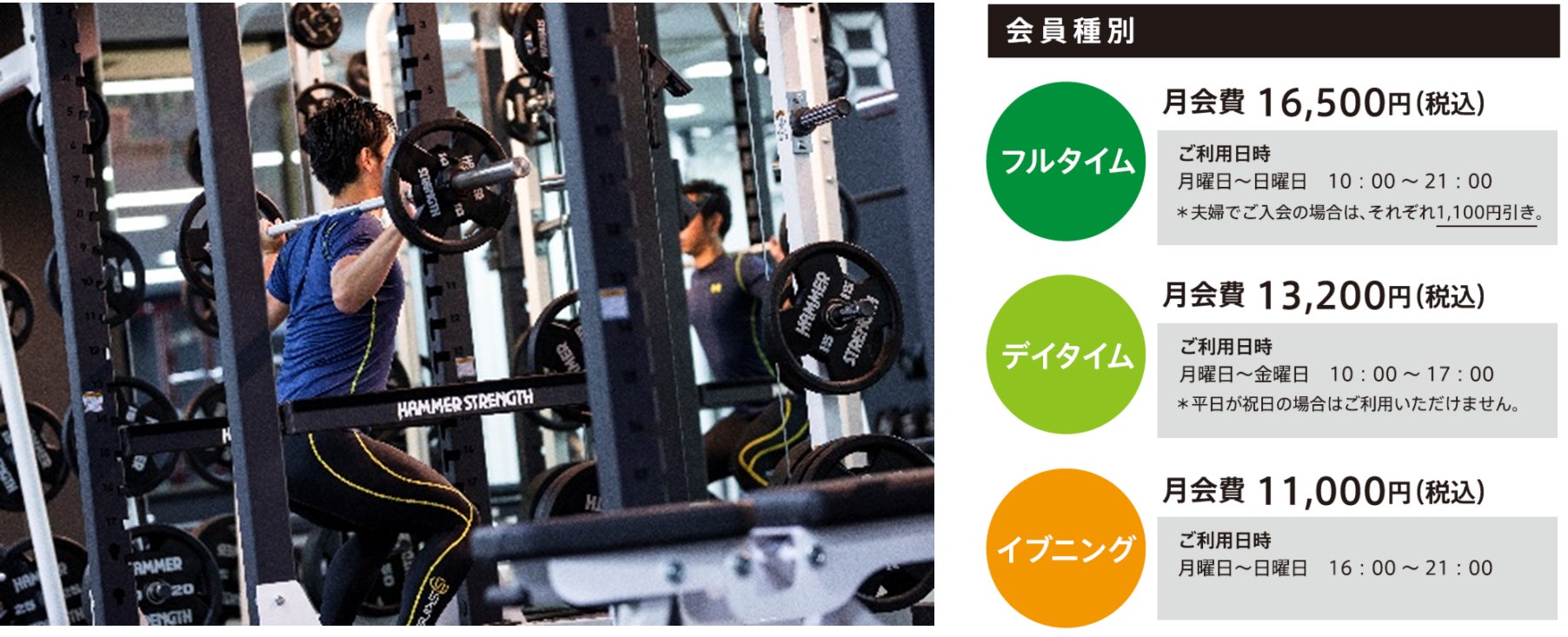 フルタイム会員 月~日10:00-21:00/月会費 16,500円(税込)