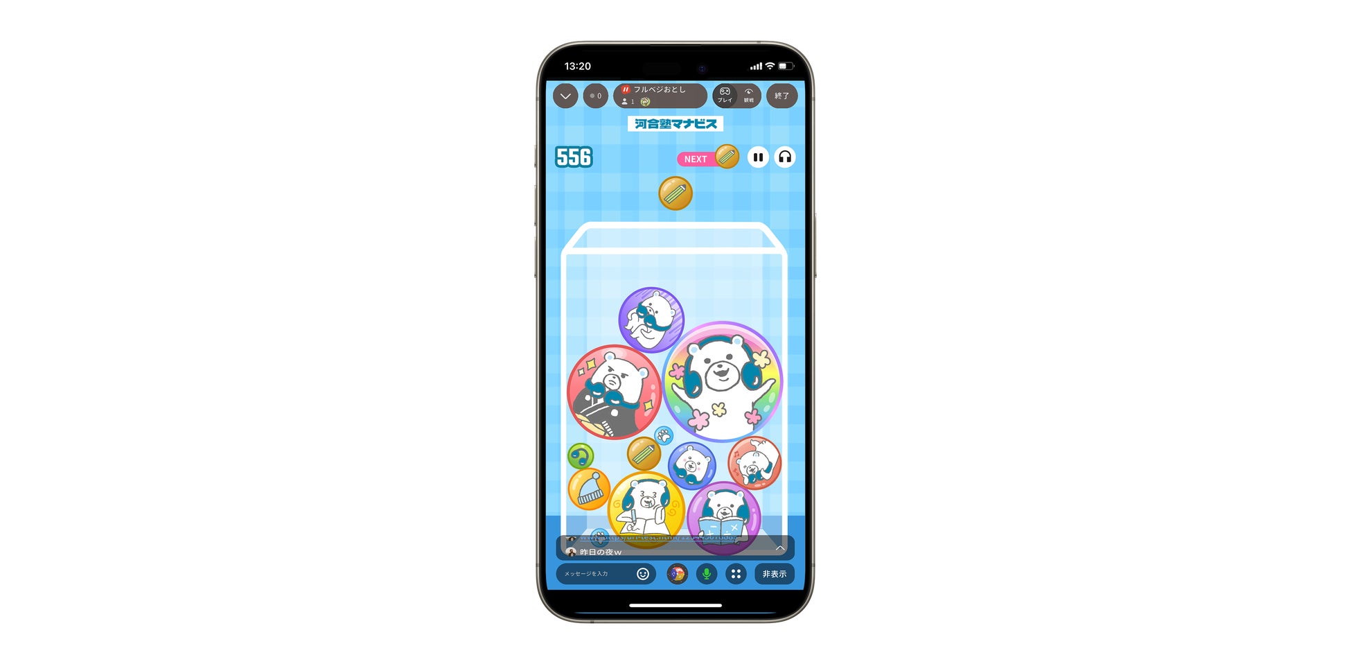 受験生を応援する河合塾マナビスの公式キャラクター「マナベアー」が「フルベジおとし」に登場!5,000点以上で通話ルームに設定できる限定ルーム背景をプレゼント