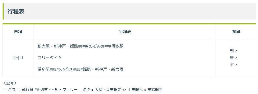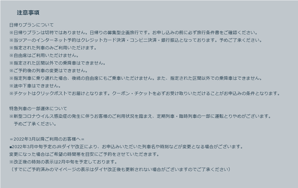 特急普通車指定席料金、JR運賃(一部各自負担の区間あり)各料金、各プラン企画費、消費税等諸税など。