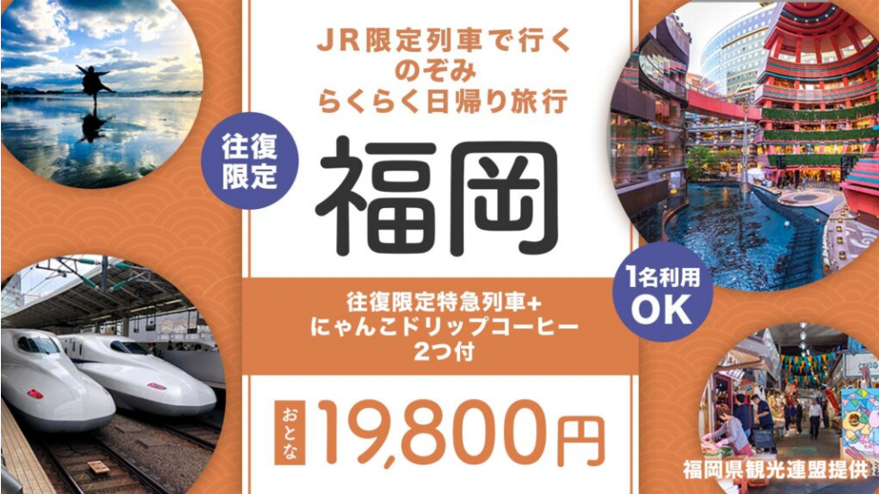 【日帰り19,800円】関西発JR限定列車で行く!のぞみで行く福岡★にゃんこドリップコーヒー2つ付【1名様からご利用OK】日帰りプラン新登場!!
