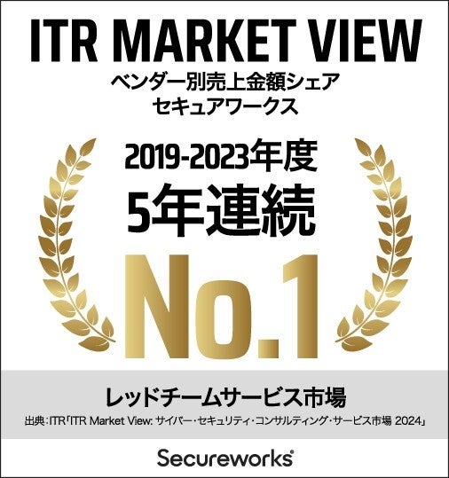 2025年1月31日、東京 – サイバーセキュリティのグローバルリーダーである Secureworks®(NASDAQ: SCWX)の日本法人であるセキュアワークス株式会社は、主要な製品とサービスのすべてにおいて、日本におけるベンダー別売上金額シェアで第1位にランクされました。株式会社アイ・ティ・アール(以下 ITR)が 発行した「ITR Market View:エンドポイント・セキュリティ対策型/情報漏洩対策型SOCサービス市場2024」と「ITR Market View:サイバー・セキュリティ・コンサルティング・サービス市場2024」においてセキュアワークスを 3つのセキュリティ市場でトップシェアに位置付けています。セキュアワークスは、2023年度「マネージドXDRサービス市場」でのマーケットリーダーの地位を獲得し、「レッドチームサービス市場」と「インシデントレスポンスサービス市場」の各市場においては5年連続(2019~2023年度)でトップに立っています。