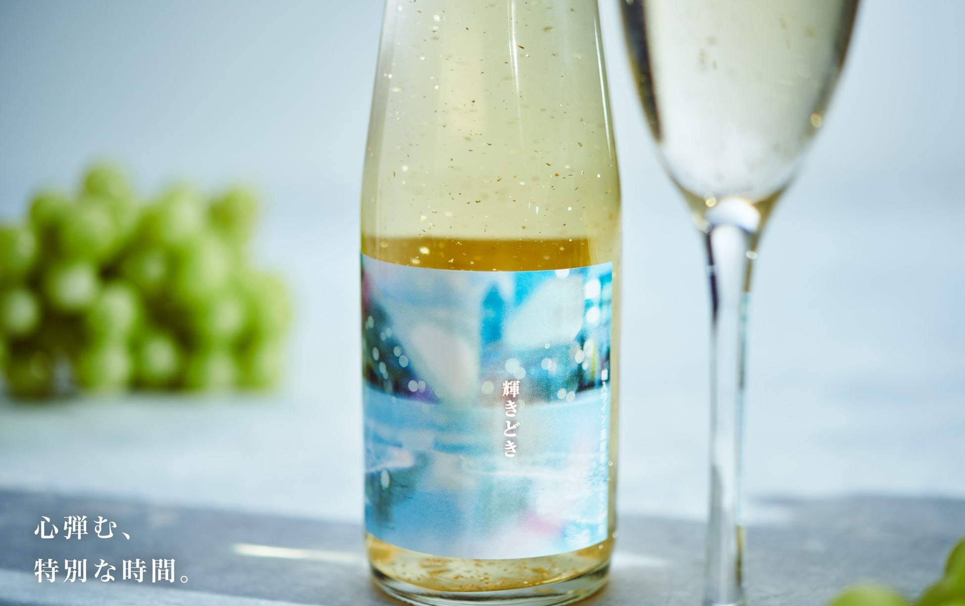 『輝きどき』は、“日常の中で少し特別な気持ちになれる時間”がコンセプトのスパークリングワイン。フルーティーな香りに、繊細で柔らかな微炭酸が口に広がり、マスカットの甘さと爽やかな酸味が調和した軽やかで心地よい味わい。華やかな金箔入りで、飲用時の特別感を演出します。本格的な味わいなのに、Alc.3%の低アルコールと飲みやすく、様々なシーンでご利用いただけます。