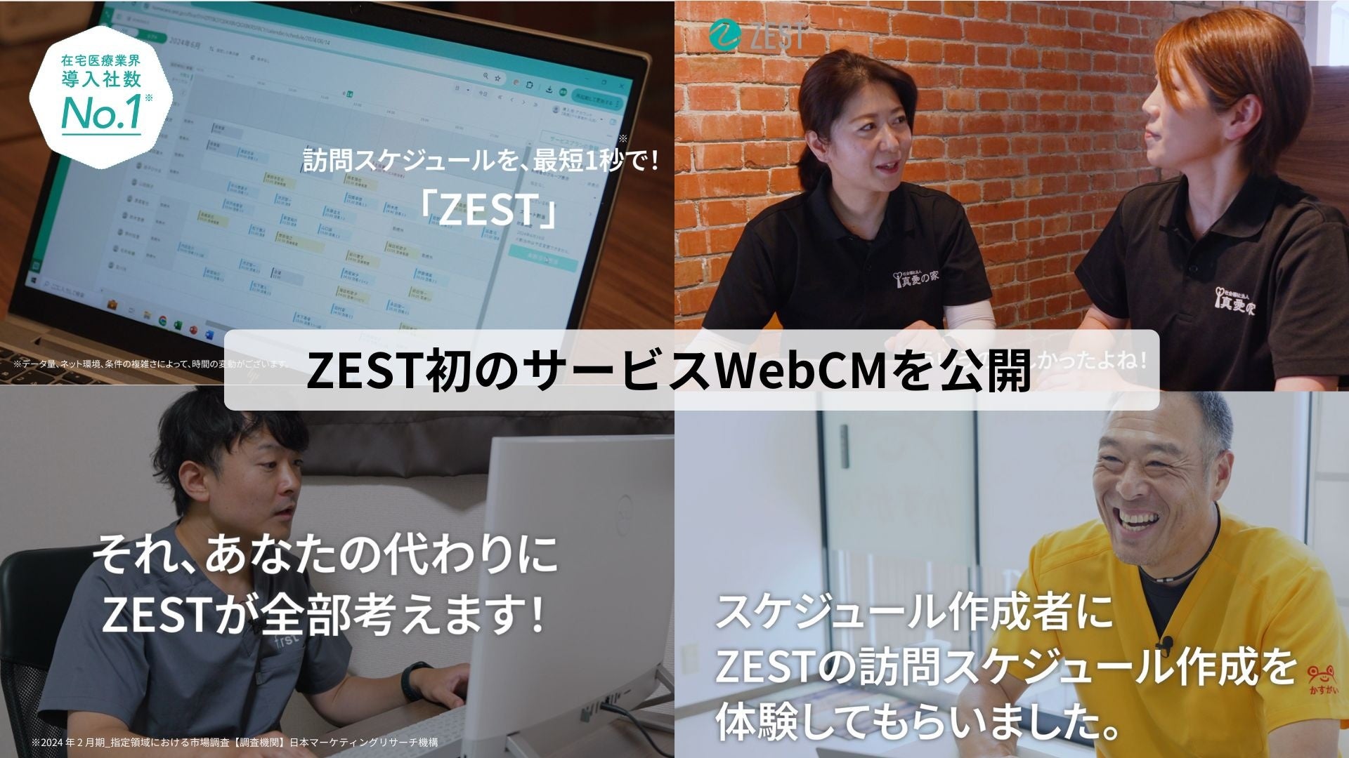 在宅医療・介護の訪問スケジュールを自動作成する、業界導入社数No,1(※)のクラウドサービス『ZEST』を展開する株式会社ゼスト(本社:東京都新宿区、代表取締役社長:一色淳之介)は、当社初のサービスWebCMとなる「ZESTのスケジュール作成が早すぎる!編」「ZESTってそんなことまで考えてくれるの?編」の2本を公開したことをお知らせします。