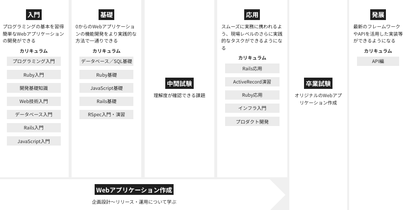 「Webエンジニア転職コース Ruby on Rails専攻」は、Web系企業から求められるプログラミングスキルや、エンジニアとして必要なスキル習得に特化したコースです。市場で求められるエンジニアになるために、プログラミング未経験から本気でWeb系企業就職を目指す方を支援いたします。
