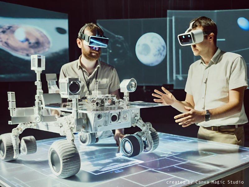 このシステムは、月面宇宙機等の開発において、物理演算を行うシミュレータとXR等を利用した3次元可視化技術を連携させ、エンジニア同士やビジネスプロモーション上での相互理解が促進されることを目的としています。