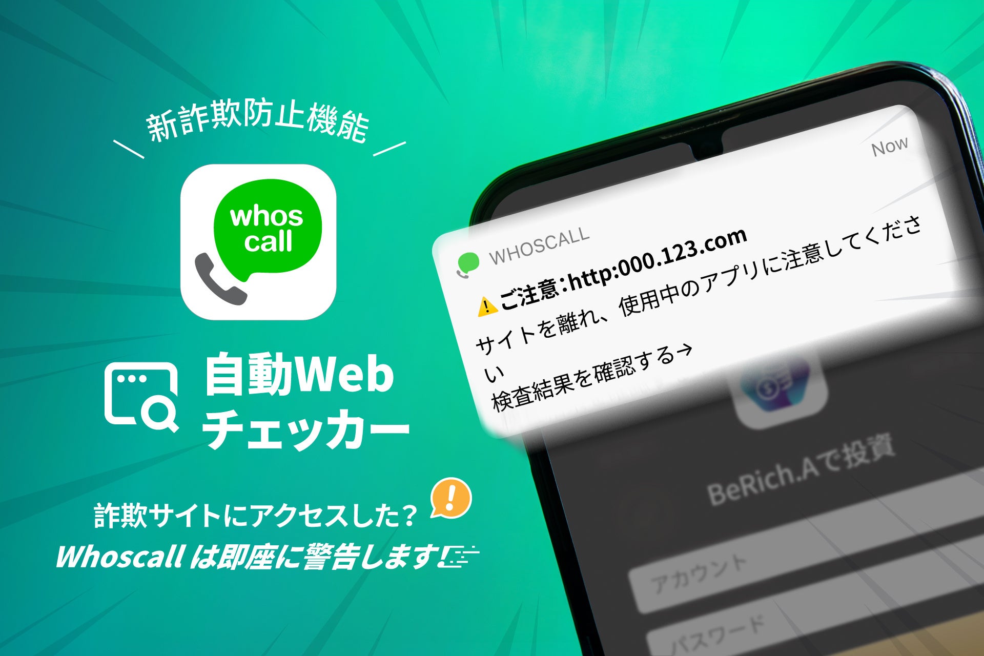 危険なウェブサイトを警告する新機能「自動Webチェッカー」を搭載/電話・ネット詐欺対策アプリ「Whoscall」