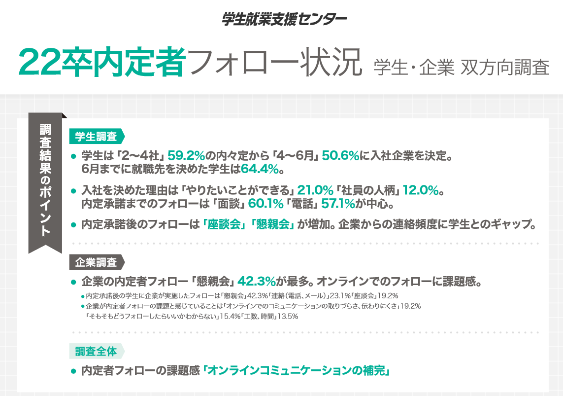 22卒内定者フォロー状況【学生・企業】双方向調査 - 資料ダウンロード