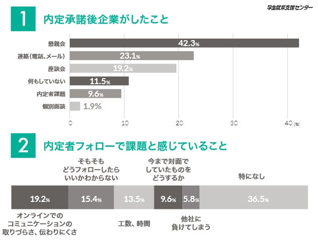 - 内定承諾までのフォロー「面談」60.1%「電話」57.1% 企業は個別フォローに注力