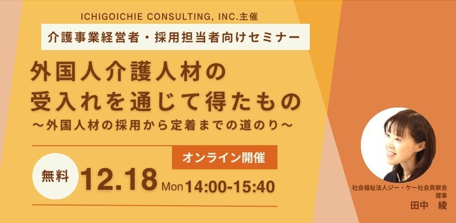 ≪12/18開催≫外国人介護人材受入れ実例をテーマに介護事業者さま向けセミナーをオンライン開催