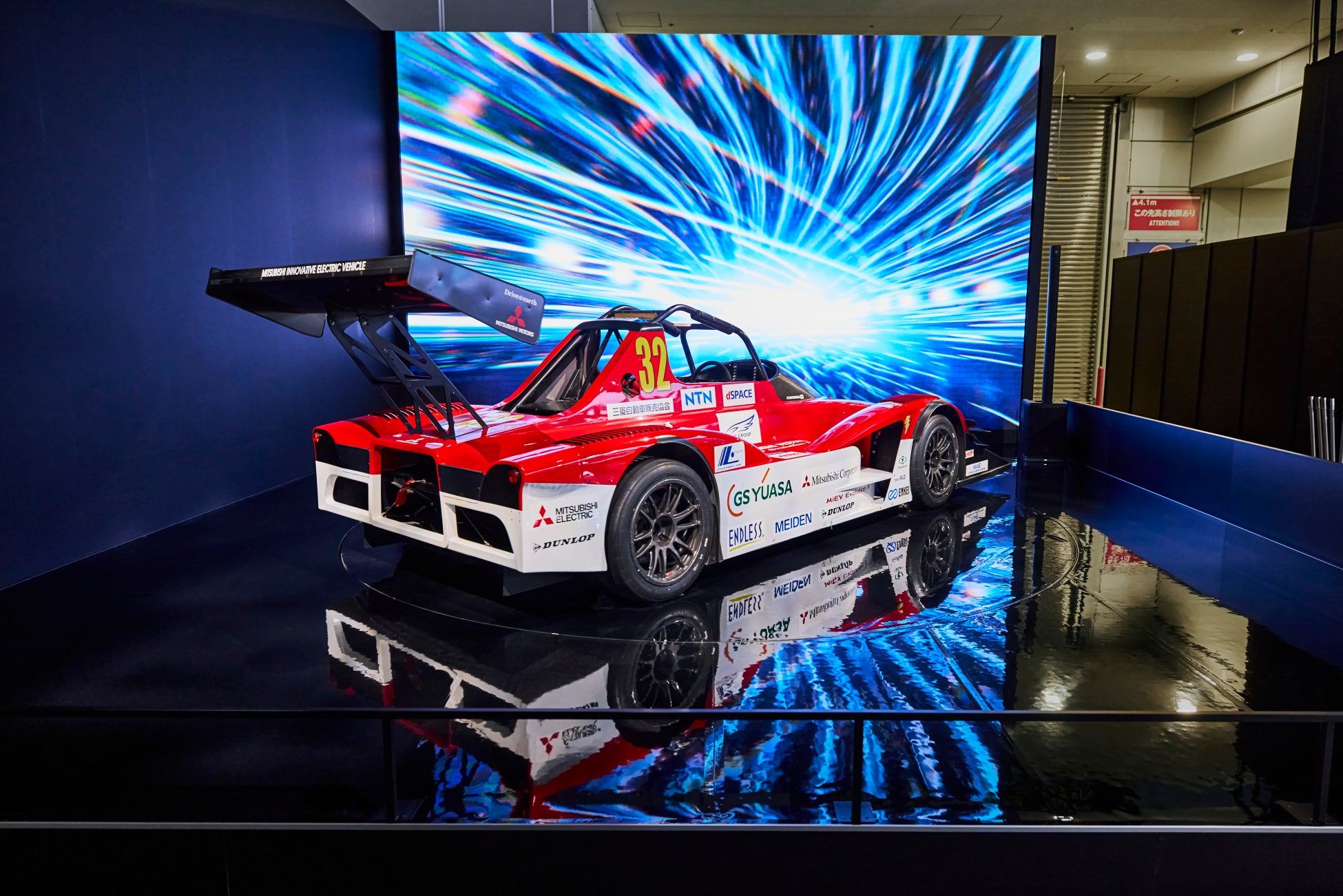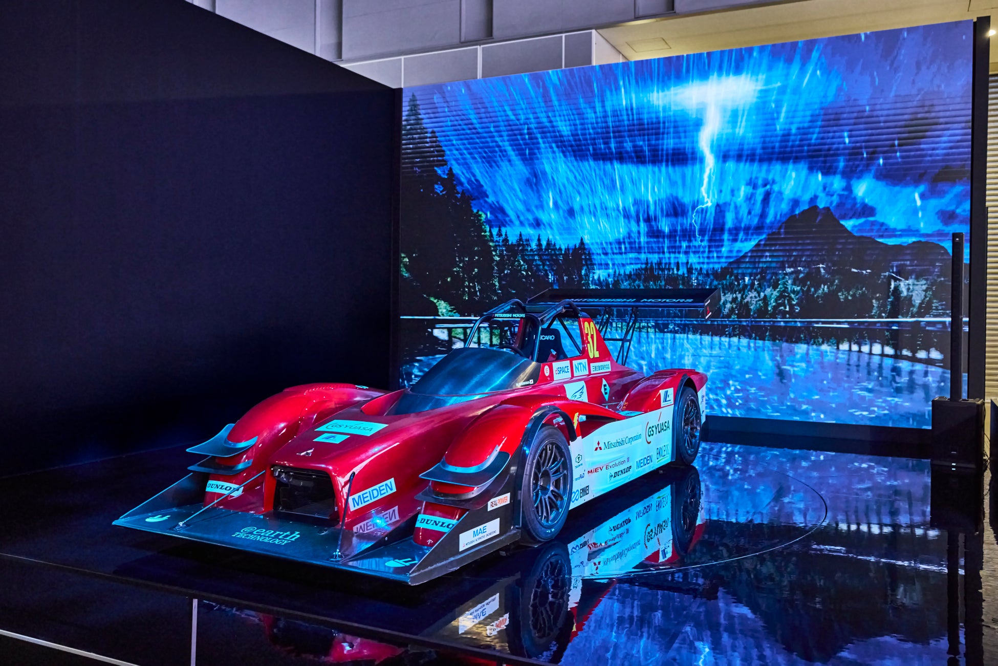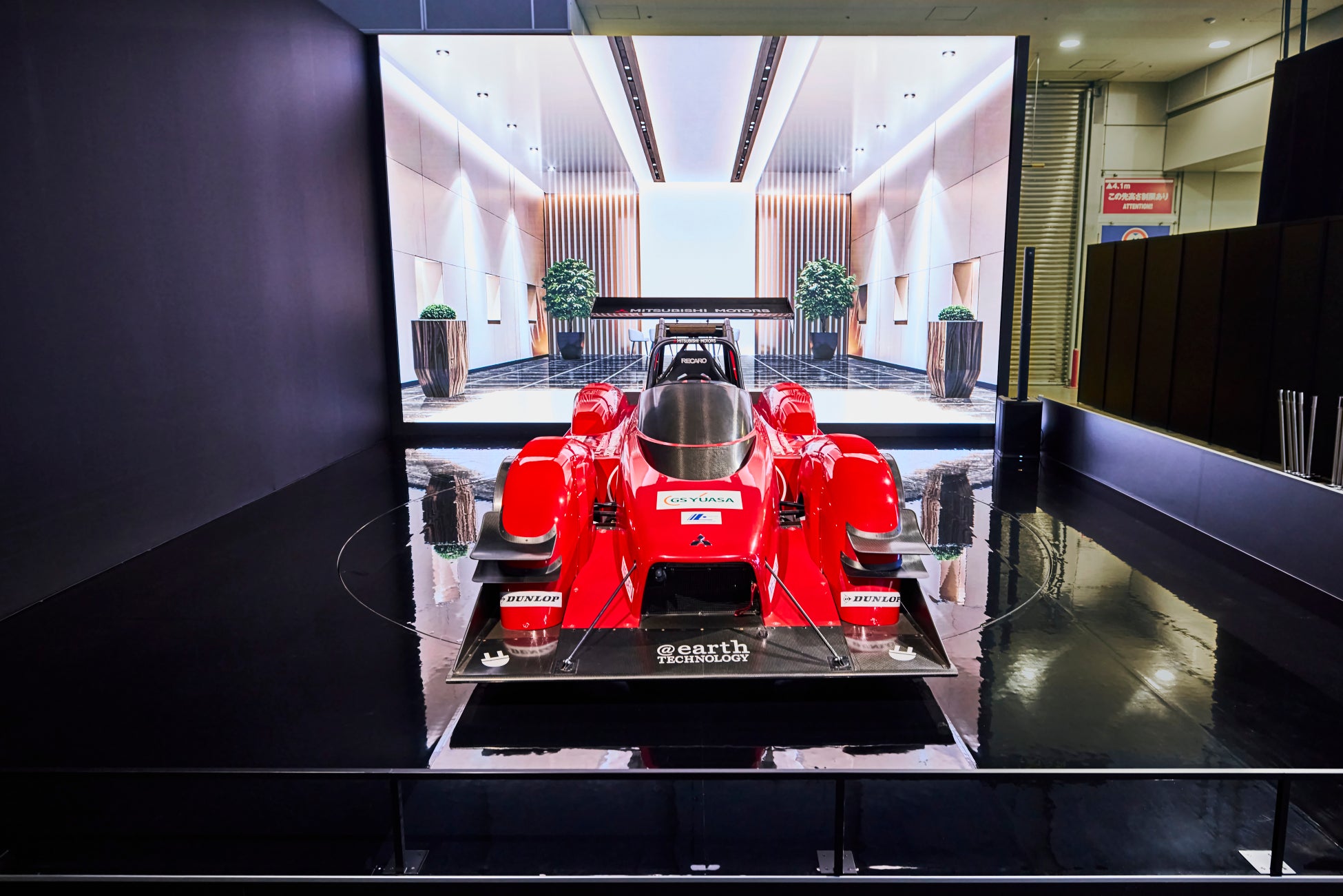 「Japan Mobility Show 2025」のメインプログラムの一つである「Tokyo Future Tour 2035」は、近すぎず、遠すぎない10年後の未来を体験できるツアープログラムです。ツアーの中で、見るだけで欲しくなる商品展示として、「4D-DRIVING EXHIBITION」をコンセプトとした“未来のディーラー”が展示されました。今回、三菱自動車工業株式会社のEV競技用車両“MiEV Evolution Ⅲ”をターンテーブルに載せ、映像や光に合わせて左右に回転させることで、あたかも目の前で走っているかのような没入感と疾走感のある展示となっています。