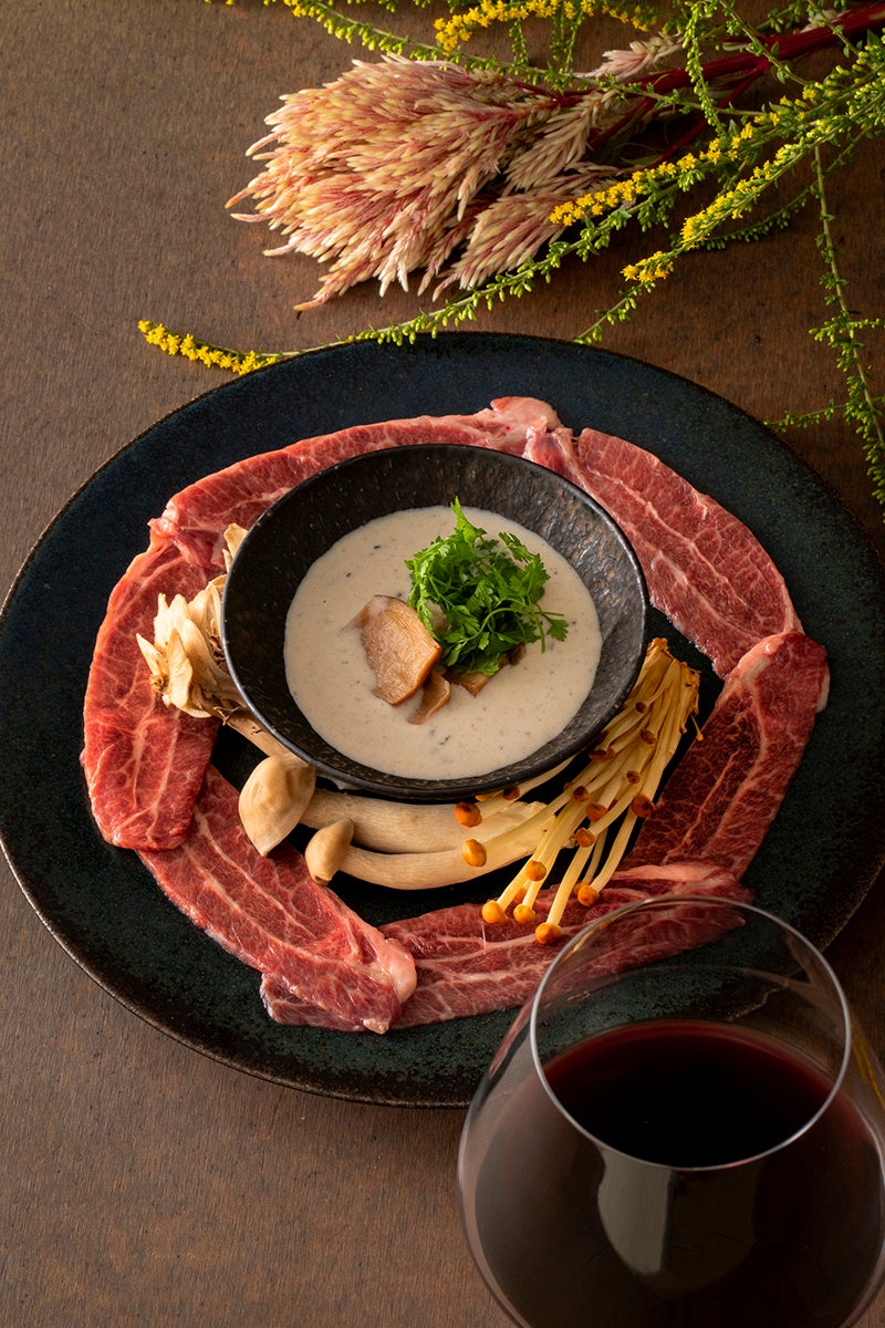 秋の味覚キノコを贅沢にしようした季節限定のソースが、牛頬肉の旨みを引き立て芳醇な赤ワインとベストマッチ!