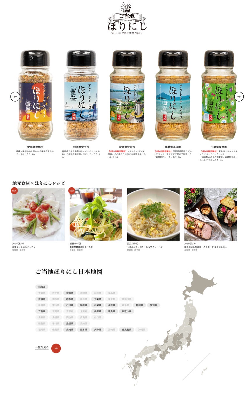 WEBサイトには、各地のご当地ほりにしの紹介や、食材、郷土料理とほりにしを掛け合わせたレシピの掲載など、食と結び付けた地域情報の発信を行います。