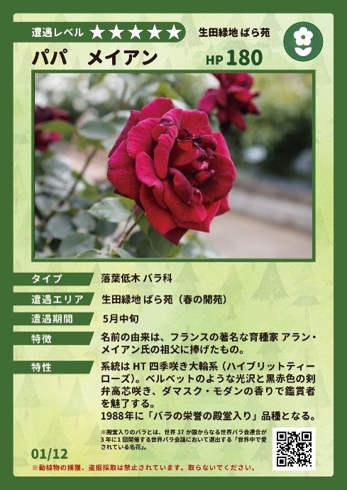 多摩区内にある豊富な自然資源の魅力を大人から子どもまで広く発信すること目的に、四季折々の草花や果物、生き物などを紹介した、オリジナルのトレーディングカード。