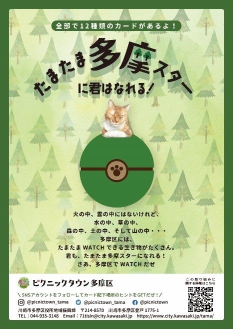 「たまたま多摩スター」を制作しました。カードの完成を記念し、区内の各スポットに配架されたカードを4種類以上集めた方先着30名に「特別レアカード」をプレゼントするTwitter連動キャンペーン「たまたま多摩スターに君はなれる!」を実施しています。
