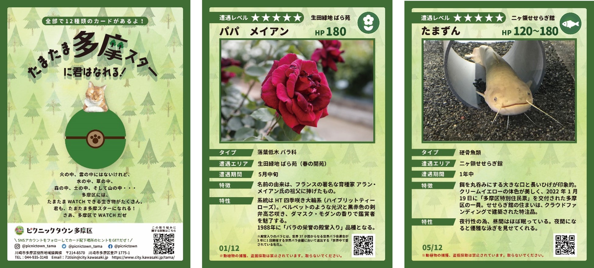 川崎市多摩区では、多摩区内の自然資源をユニークに紹介した、多摩区オリジナルのトレーディングカード