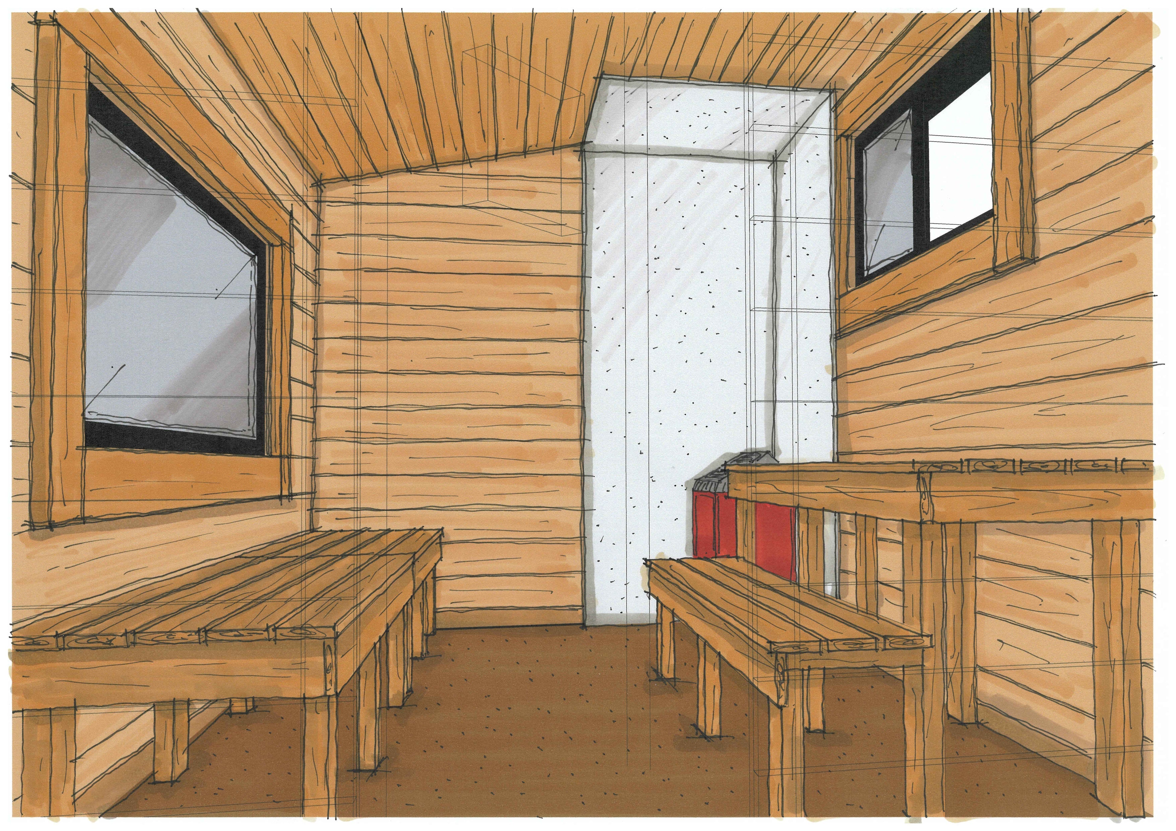 ・フィンランド式のメトス社製電気式サウナヒーター使用で、ロウリュもでき安全で管理が容易(200Vでガソリン式発電機にも対応)