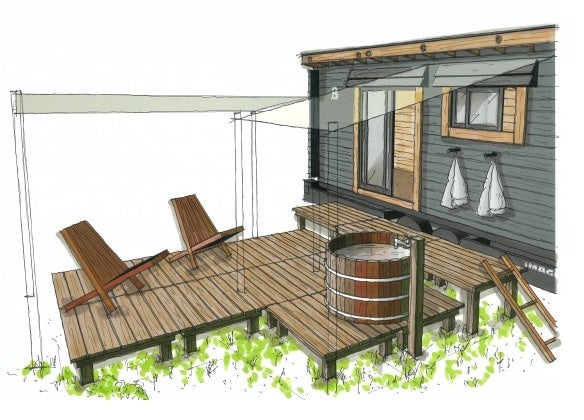 牽引して移動できるため、川や湖、海の側に運んで天然の水風呂を楽しんだり、期間限定のイベント利用も可能。敷地内の近距離移動は小型の電動牽引機でも可能。牽引免許がなくても簡単に設置場所の調整ができます。また、通常では建築の難しいエリアでも設置可能です。
