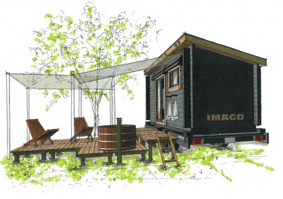 “走るログ小屋”「IMAGO」は2021年10月に発売。可動式で手軽に設置できることから、店舗やキャンプ場施設などに活用され、そのユニークな内外観によって広く話題を呼んでいます。木の香り豊かな本物の国産杉に囲まれた空間を体験した多くの方から、サウナ仕様への問合せ・要望を多くいただいていました。