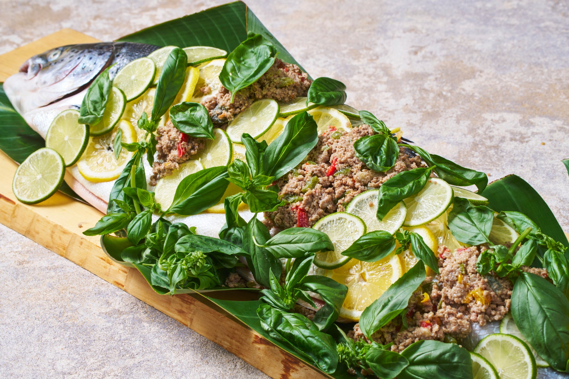 また、「ポークハワイアン」(※2)は、カリッと香ばしく焼き上げた皮と、ジューシーで柔らかいお肉のコントラストが魅力の一品です。お好みで、ハーブのすっきりとした香りが広がるチリソースと甘酸っぱいパイナップルを合わせれば、爽やかな風味が広がり、お肉の旨みをより一層引き立てます。南国の魅力を感じる、贅沢な味わいをご堪能ください。