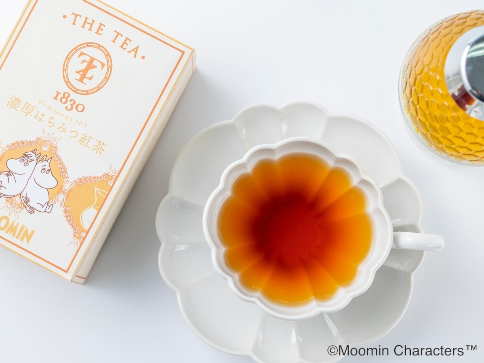 可愛らしいムーミンとスノークのおじょうさんをパッケージにデザインした濃厚はちみつ紅茶。人工甘味料不使用。カップにティーバックを入れてお湯を注ぐだけで紅茶のコクと、はちみつの芳醇な香り、甘みを楽しめる「濃厚はちみつ紅茶」。使用している茶葉は、セイロン紅茶の代表格にあげられるウバ茶です。スリランカ南東部、標高約1300m以上の高地で栽培されています。広大な茶畑で一つ一つ丁寧に摘まれたウバ茶は芳醇なコク、キレの良い渋味、そして深い赤めの色合いが特徴です。はちみつパウダーには、質が高いことで知られる【日本産のはちみつ】を使用。手間を惜しまず作られたはちみつは香り高く、濃密でコクのある甘みが特徴です。試行錯誤の末辿り着いた茶葉とはちみつパウダーの黄金比。至福の時をお楽しみいただけます。
