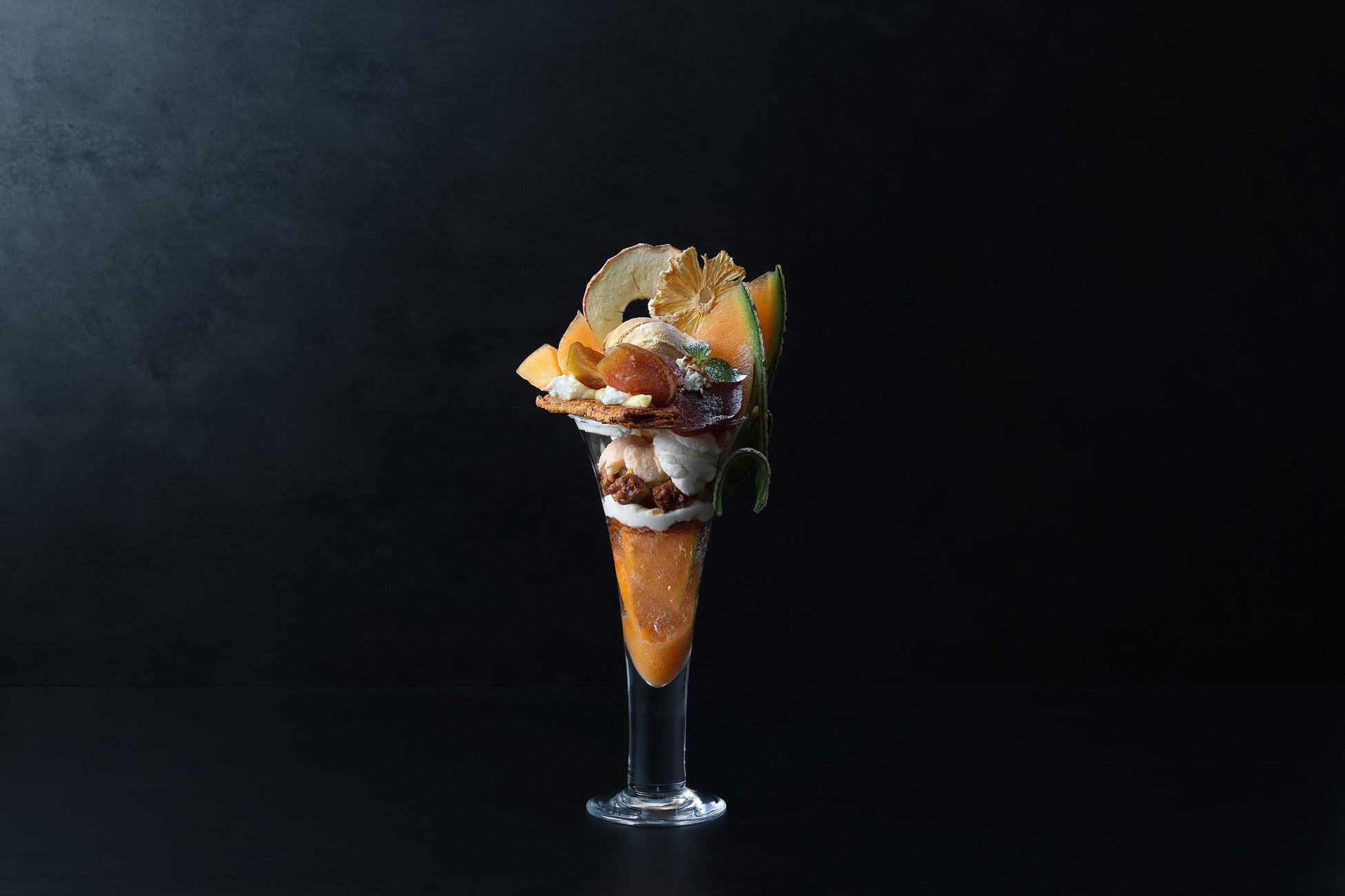 ●メロンとりんごのキャラメリゼ・パフェ