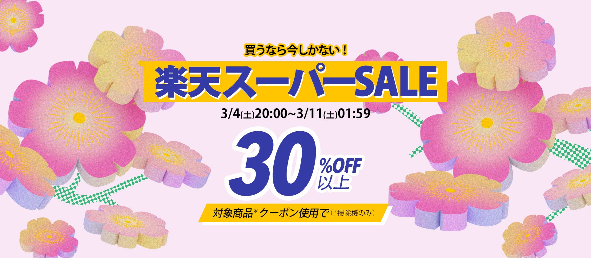 ECOVACS傘下子会社のティネコインテリジェント株式会社(以下、Tineco)は、2023年3月4日(土)~3月11日(土)の楽天スーパーセール期間中、全掃除機を対象とした最大30%OFFの割引キャンペーンを実施いたします。