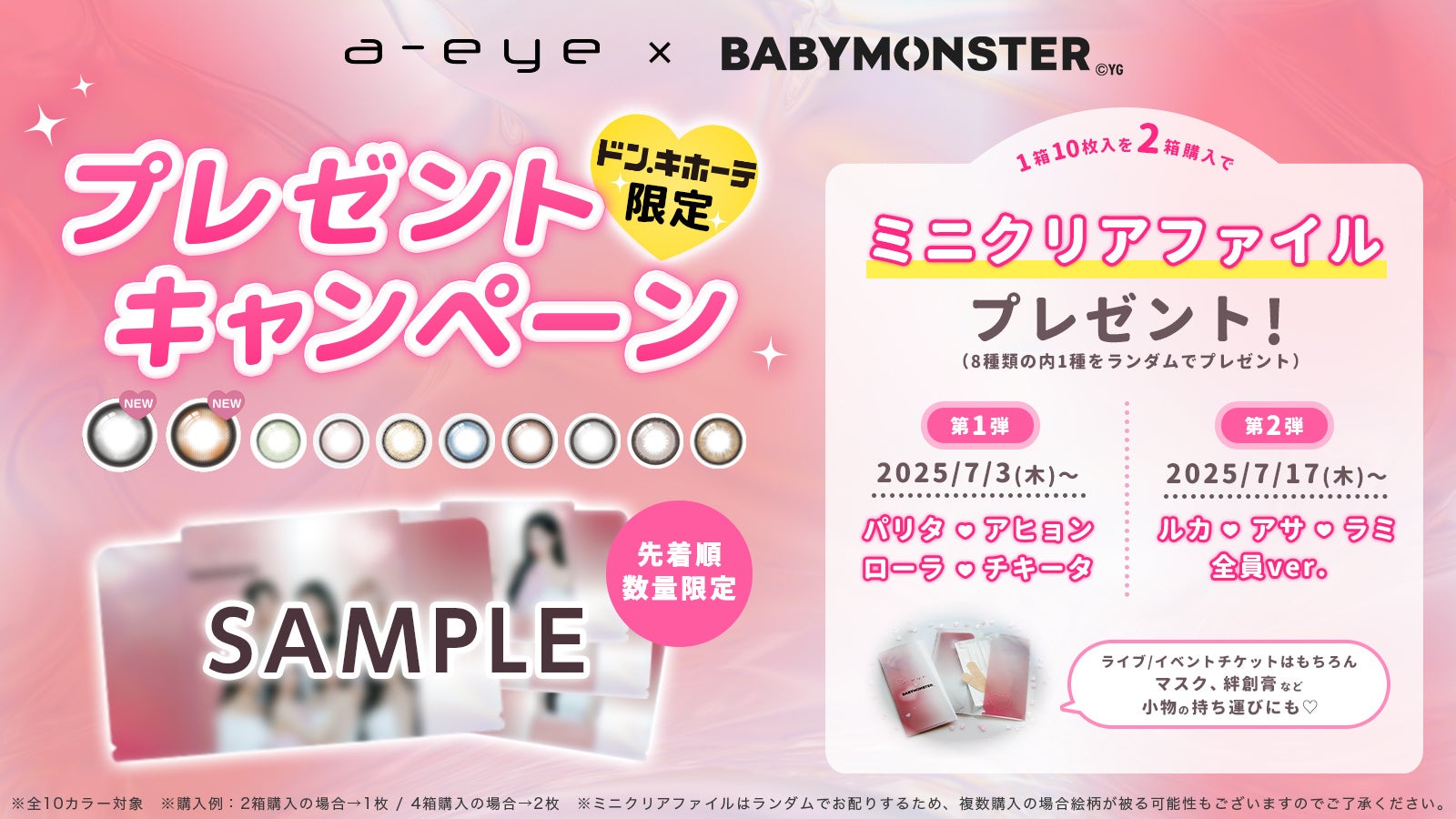 a-eye新モデル就任記念!ドン・キホーテでノベルティキャンペーンがスタート!今なら「a-eye×BABYMONSTER」の限定ミニクリアファイルをプレゼント。
