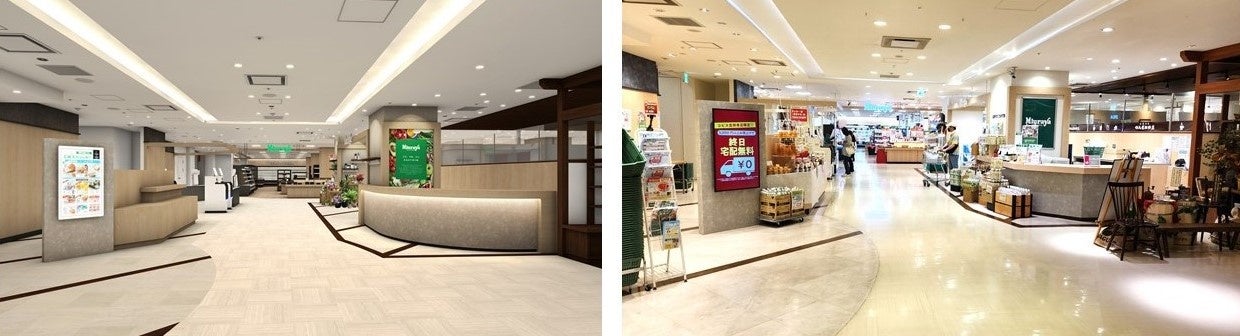 三浦屋様が守り続けて来た『安心できる本物の食で豊かな暮らしを創造するお店創り』、『お客様に寄り添うホスピタリティ』をコンセプトに、開放的で居心地の良い店舗創りをご提案、若年層向けのデザイン設計で顧客層の若返りと拡大を目指しました。加えて、三浦屋様コピス吉祥寺店は開店から10年超が経過し、同店が入居する商業施設内の他テナントの入れ替わり等の外部影響を受け、2つある店舗入口のうち、メイン入口を切り替え、来店客の回遊性を高めたいという要望をお持ちでした。