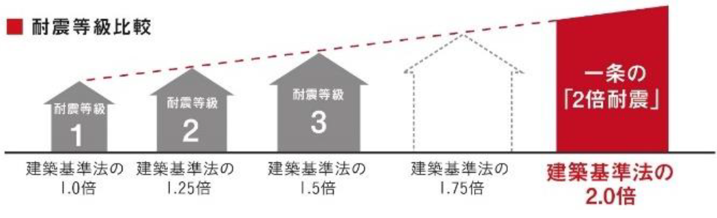 標準仕様:建築基準法の2倍の耐震性を実現。繰り返しの地震に強く、建物の倒壊を防ぐことはもちろん、室内の損傷をも抑えられる住まいを追求しました。