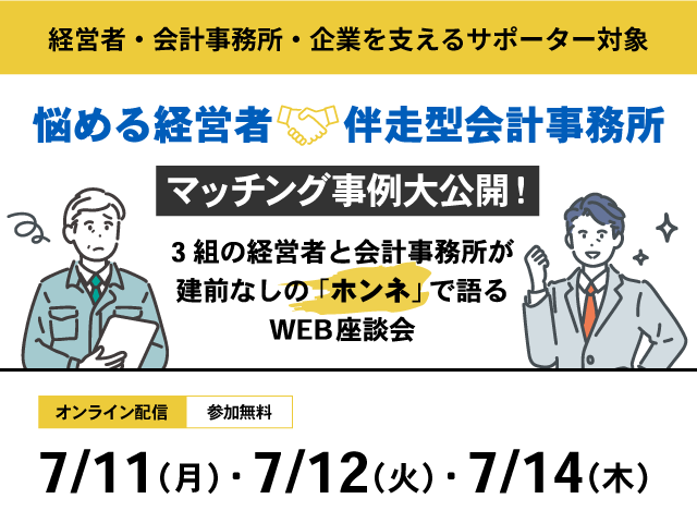 【経営支援を受ける側・する側のホンネ】3組の経営者と会計事務所が建前なしの「ホンネ」で語るWEB座談会開催決定!