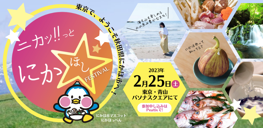 東京で、ようこそ秋田県にかほ市へ!まちの魅力を体感し、まちと繋がるリアルイベント『ニカッ!っとにかほしフェスティバル』2月25日(土)東京・青山 パソナスクエアにて開催