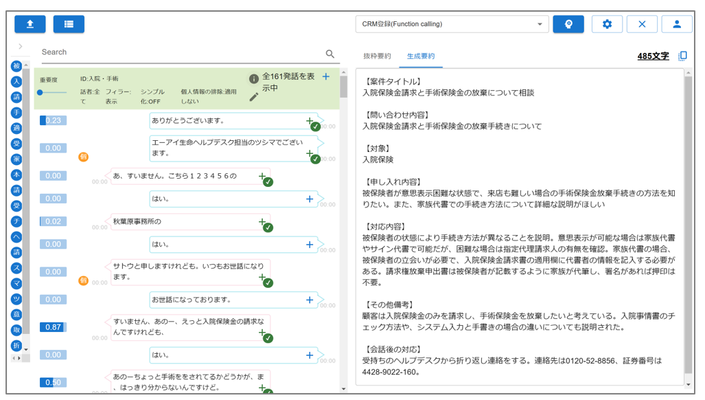 本連携によって電話応対・会話のテキスト化・要約がシームレスに繋がり、通話内容の即時チェックや、履歴の自動作成、AIによるオペレータ評価が可能となり、コンタクトセンター業務の高度化を強力にサポートします。