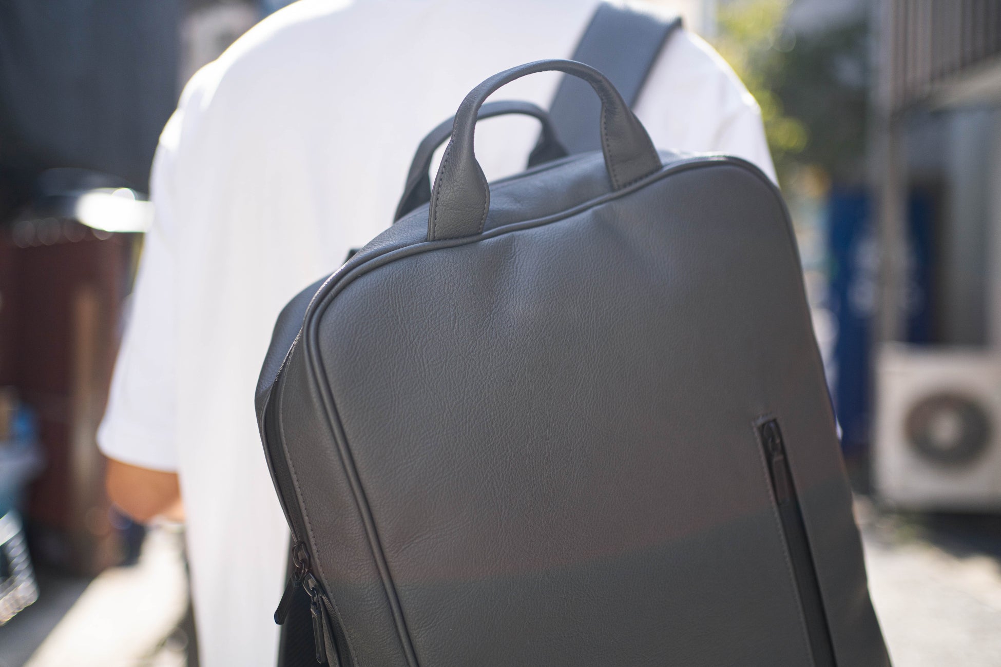 未来で飛躍するビジネスパーソンのためのバックパックとして、「立つ」という新しいコンセプトに加え、どんなシーンでも馴染むシンプルなデザインとサステナブルな植物由来の素材「カポック」「アップルレザー」を利用していることが特徴です。「機能・デザイン・サステナブル 」の三つのキーワードにこだわった、次世代アイテムです。