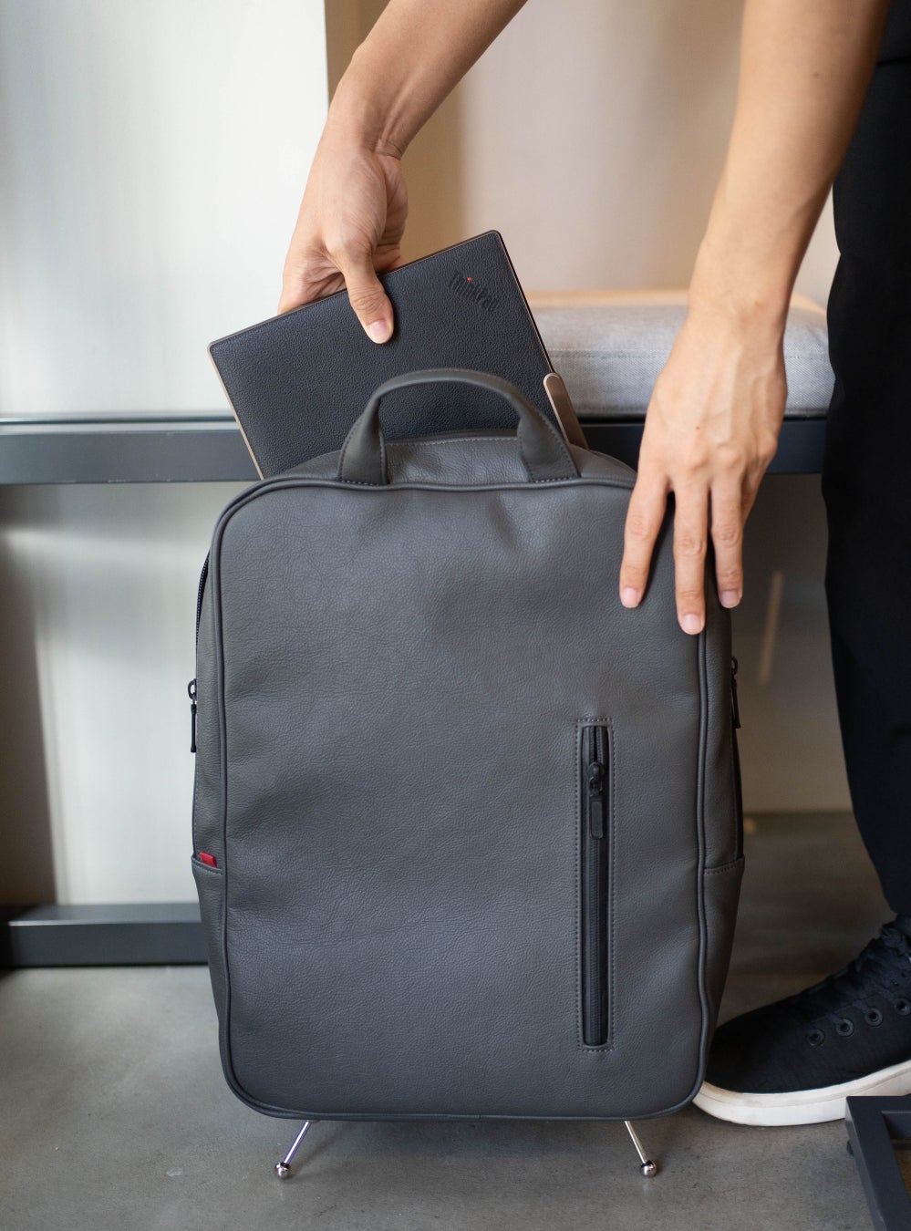 このバッグパックは、世界有数のPCメーカーであるレノボ・ジャパン合同会社とのコラボレーションアイテムです。レノボの主力商品ThinkPadの今年発売された生誕30周年を記念して開発された「Think Pad Z」を収納するのに相応しいバックパックとして製作しました。