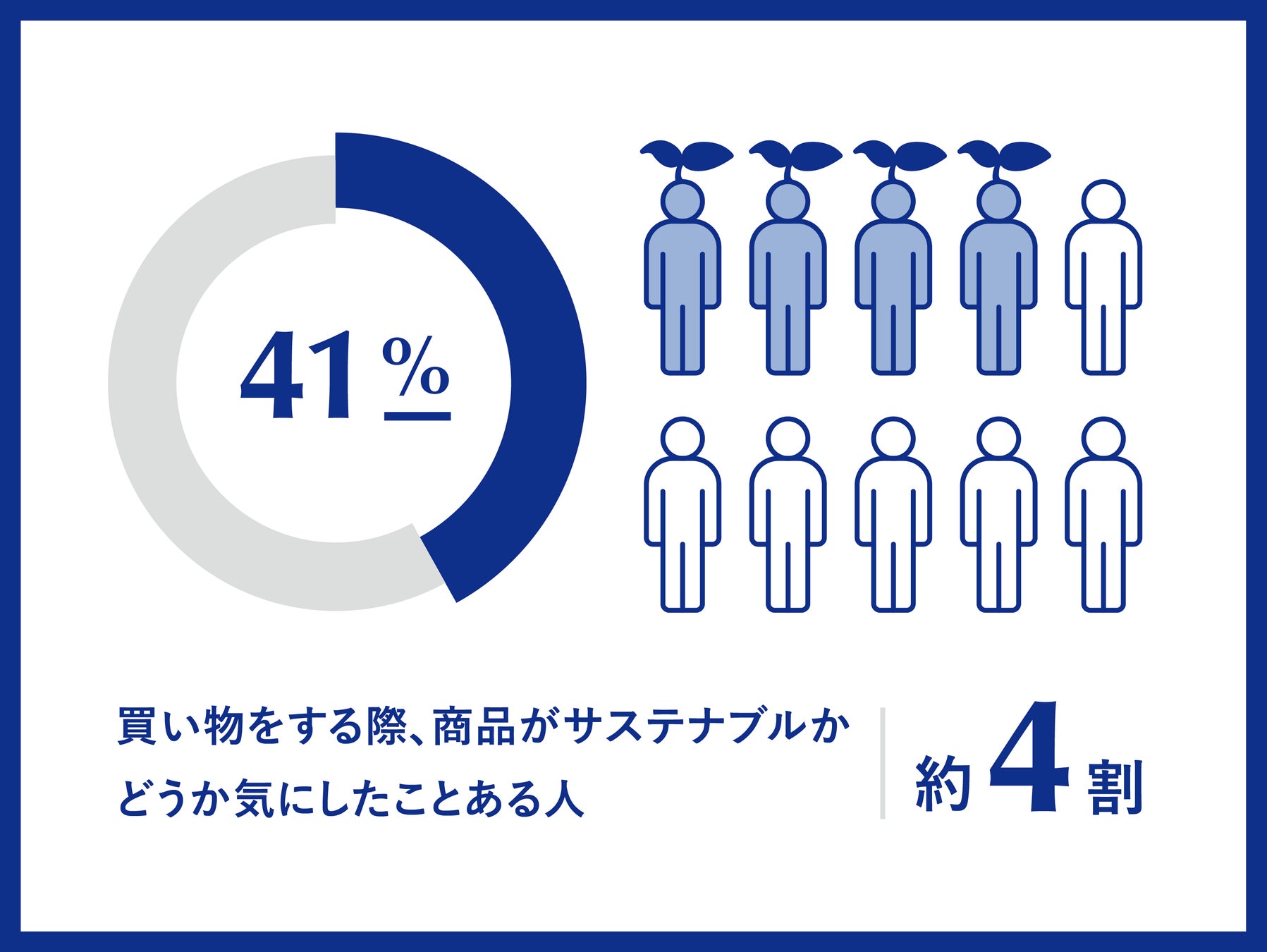 また、調査では「買い物をする際、商品が『サステナブル』かどうか気にしたことある人」は4割でした。