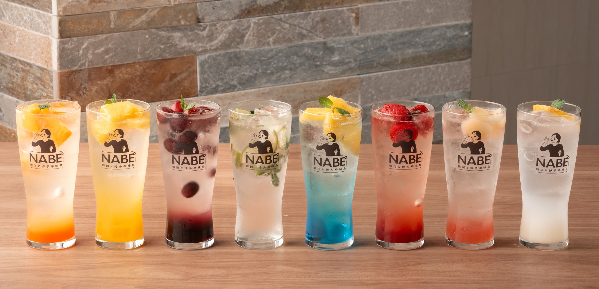 ソーダのすっきりとした飲み口は、旨辛な韓国料理との相性も抜群。赤・青・黄色・紫など、全8色のバリエーションは、韓国料理と一緒に「推し活」も楽しめる、新しい乾杯スタイルをNABE°で。