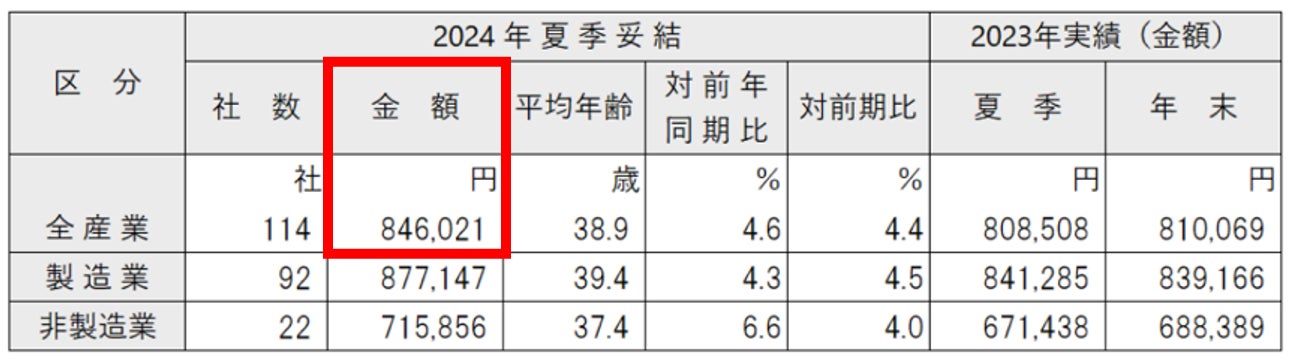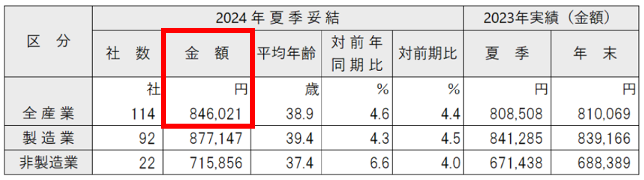 ※2:一般財団法人 労務行政研究所「東証プライム上場企業の 2024 年 夏季賞与・一時金(ボーナス)の妥結水準調査」
