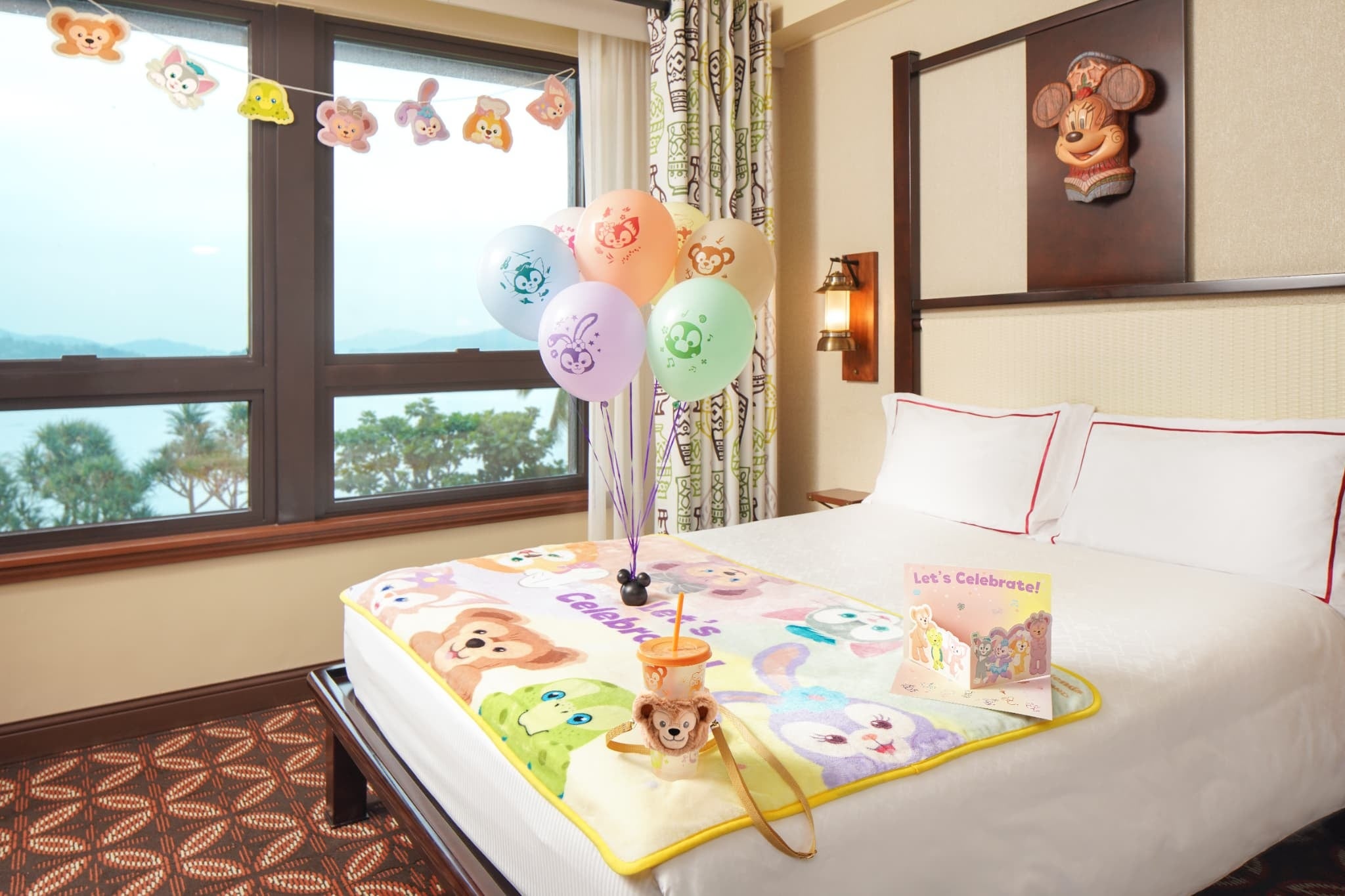 パークの魔法は、ホテルステイでも続きます。リゾートホテルでは、セーラー風コスチュームをまとった限定ぬいぐるみが含まれる「ミッキー&ダッフィーのボヤージュ インルーム・テーマ・サプライズ」で特別な滞在を楽しめるほか、新登場の「ダッフィー&フレンズ インルーム・セレブレーション」を加えれば、お部屋がダッフィーの世界観に包まれた特別な空間に生まれ変わります。