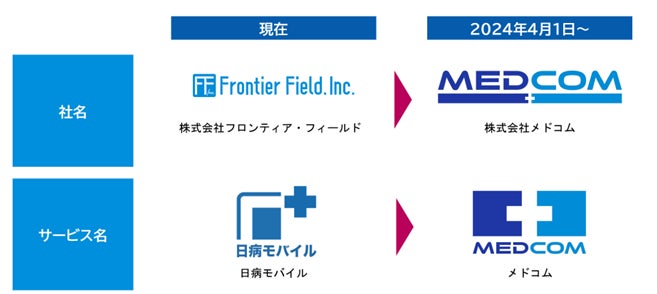 当社は日本の医療・ヘルスケアの領域にITの力で革新をもたらすベンチャー企業です。2016年に創業した「フロンティア・フィールド」は、DXが進んでいない医療業界に対して、「未知の領域を開拓していく」という思いを込めて命名されました。創業時から現在までの約8年間、医療従事者の業務効率化に貢献するべく、「日病モバイル」の開発・普及を図ってまいりましたが、この度、当社のビジョンを体現するとともに、新たなサービス名「メドコム」と同じくすることで、皆様により親しみやすい社名となるよう、変更することと致しました。