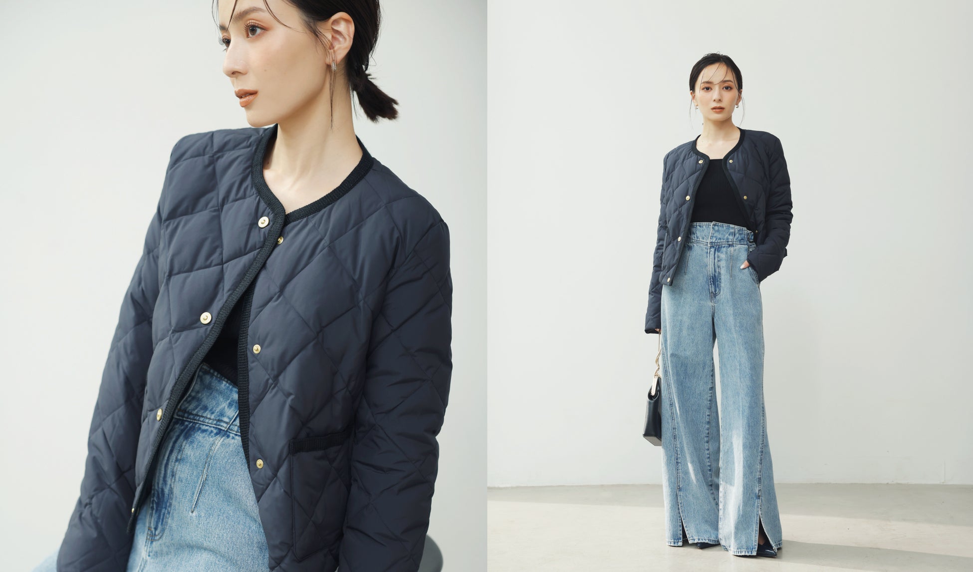 着膨れしない絶妙な分量感で、一枚着はもちろんコートインとしても着回し出来る万能な一着。