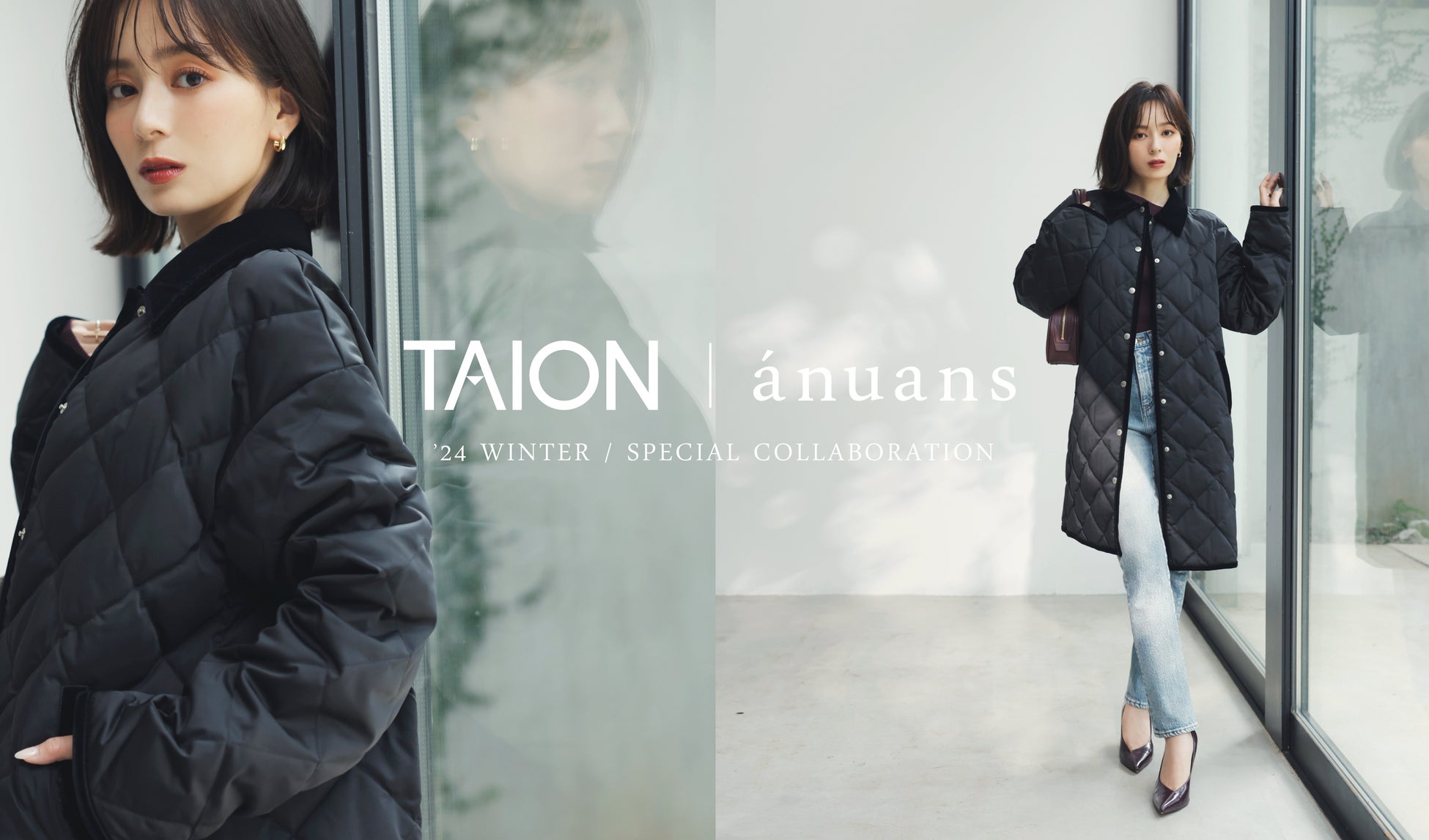 株式会社DOT ONE (本社 東京都渋谷区/代表取締役社長 藤井亮輔)が運営するブランド「ánuans(アニュアンス)」とダウンブランド「TAION(タイオン)」のコラボレーションアイテムが登場。