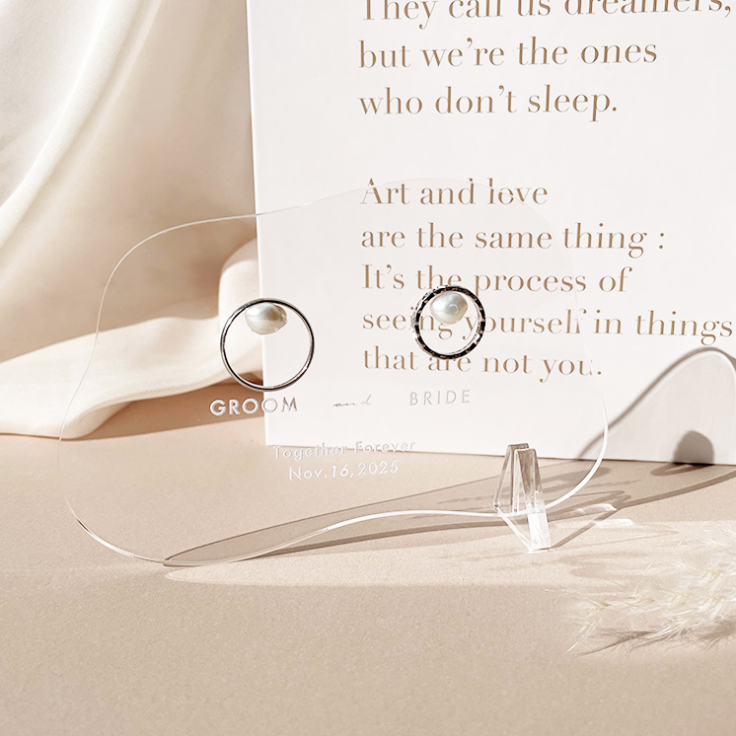 この度fitauでは、アクリル素材を用いた新感覚のリングピローを発売いたします。挙式後もインテリアとして日常的に使っていただけるおしゃれなリングピローです。