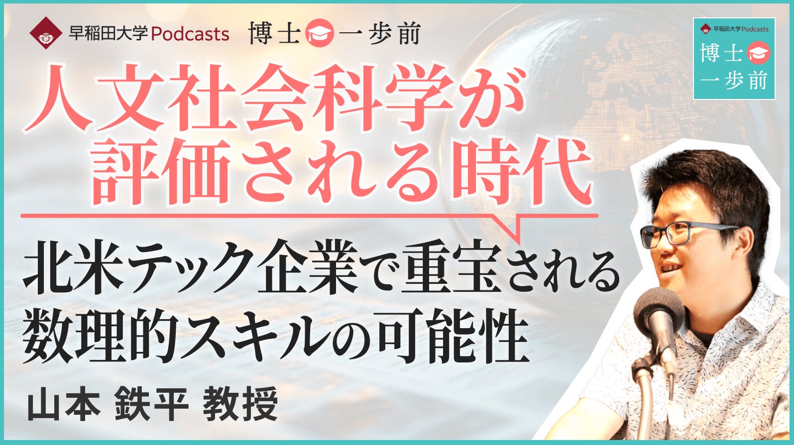 早稲田大学(東京都新宿区、総長:田中愛治)は、Podcast番組「博士一歩前」の新エピソードとして、政治経済学術院の山本鉄平教授をゲストに『因果革命で切り拓かれた、人文社会科学での数理的素養の可能性』の配信を開始しました。