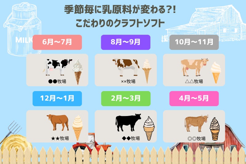 季節ごとに年6回変わるソフトクリームメニューでは、産地や牛の種類、季節による乳原料の味の違いを楽しめる、新たなソフトクリーム体験を提案します。
