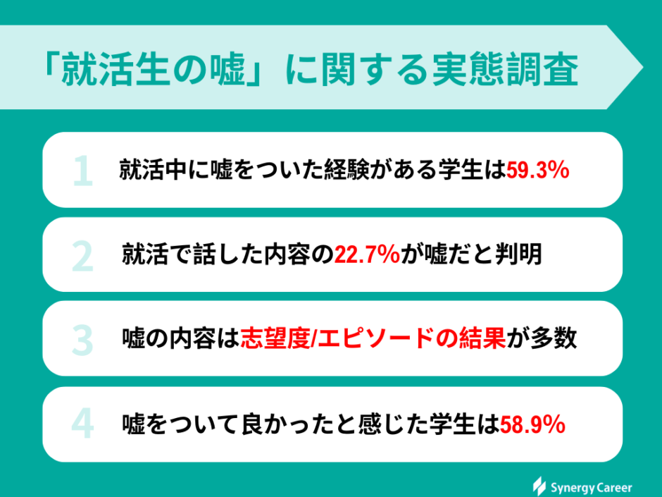 1、就活中に嘘をついたことがある学生は59.3%と多数